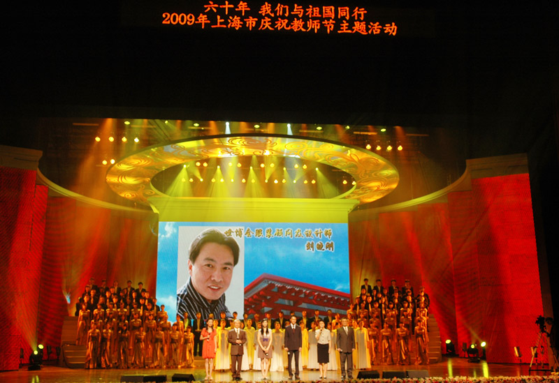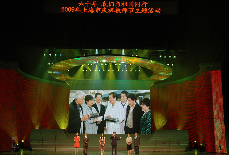 大会还对2009年教育系统的先进集体和先进个人代表进行了表彰。我校王以刚副书记代表东华大学纪委、监察审计处上台接受了“全国教育系统先进集体”的表彰,“上海市模范教师”宋福根教授、沈新元教授、陶莉老师,“上海市教育系统先进工作者”蒋光辉老师应邀观摩了演出。演出前副校长宋立群,人事处、宣传部及服装学院负责人慰问了我校参演或出席晚会的教师并合影留念。