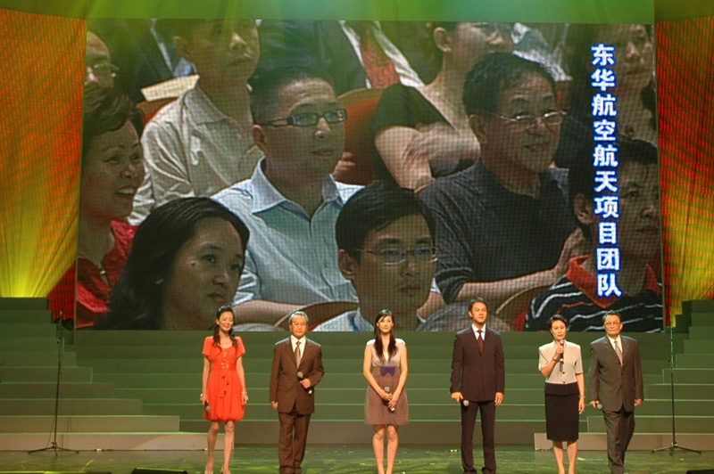 “老师,是您让传统的纺织、服装和材料等学科创造了一个又一个奇迹,实现了中华民族飞天的梦想!”听着激情的朗诵,航天卫生材料项目负责人袁琴华教授表示,“很为东华大学骄傲!”自己虽已退休,但会继续做研究,为服务社会尽绵薄之力。当看到大屏幕展示出“上海教育九大世博会设计师”画面时,年轻的罗竞杰老师说,“我们团队成员都为能服务世博而感到光荣!”,在参与世博服装的设计过程中,他深切体会到了学科贡献社会的责任,作为青年教师,大家会珍惜机遇、奋发图强,不辱使命!浦解明副书记则表示,大学理应与祖国同呼吸共命运,演出所展示的是我校众多锐意创新、攻艰克难的教师代表,学校会继续弘扬传统,力争为“科教兴国”做更多贡献。