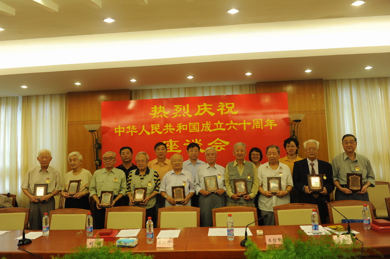 会议首先举行《荣誉纪念证》颁发仪式,朱书记、王副书记等领导向每位老同志颁发国庆60周年《荣誉纪念证》,并和老同志合影留念。