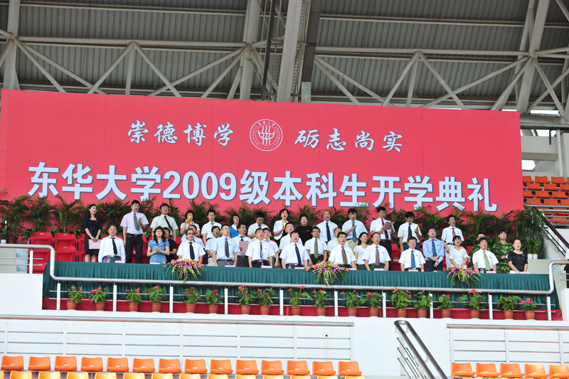 管理学生新生郑隆滕带领全体同学庄严宣誓,表示将秉承东华精神,恪守东华校训;志存高远,胸怀祖国;崇德博学,砺志尚实;尊师爱友,诚实守信;刻苦学习,追求卓越;求经世济民之学,成国家栋梁之材。他们的誓言响彻大学生体育场上空,与高扬的彩球一起,在秋日的晴空中阵阵回荡。