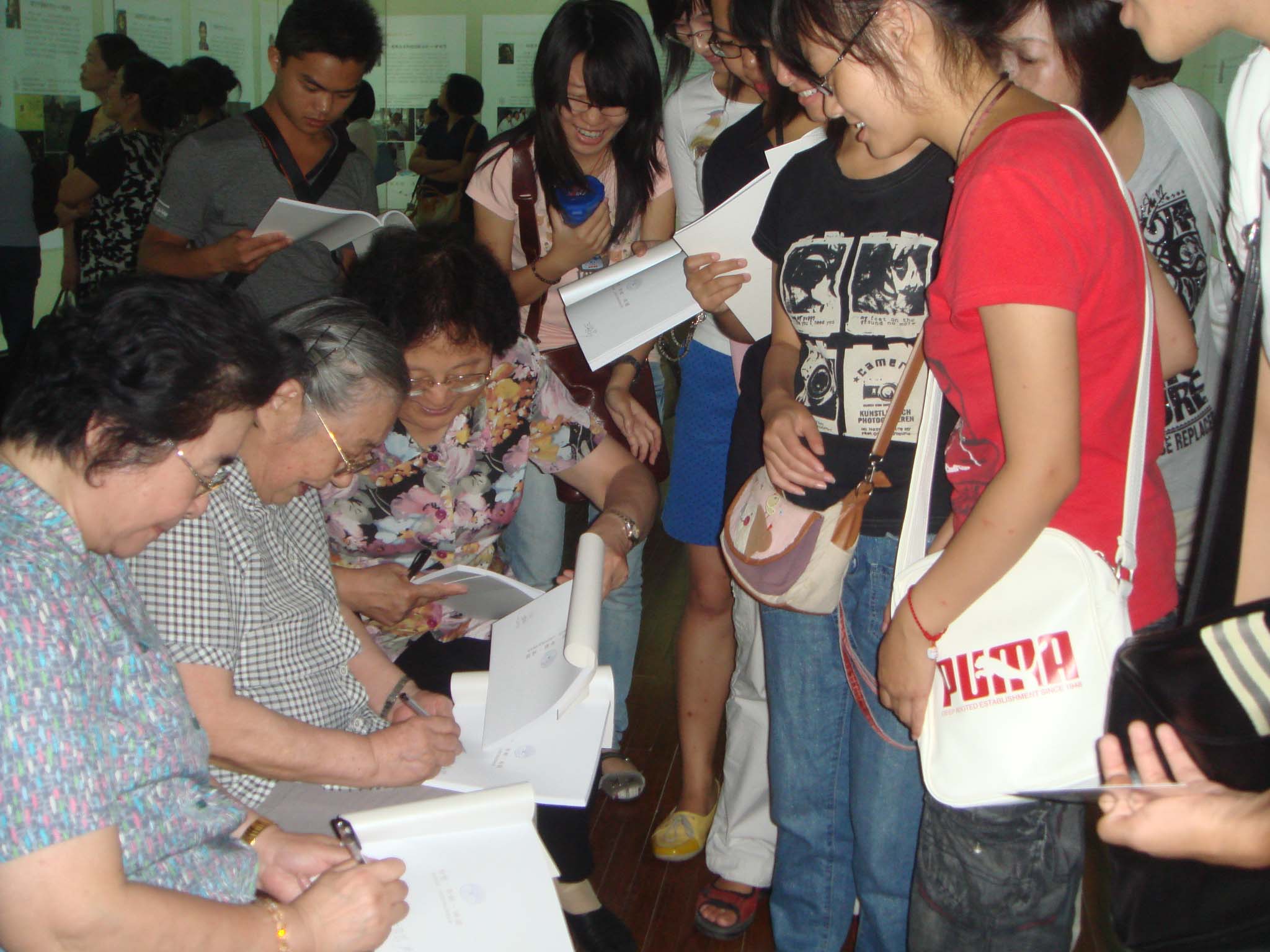 参观结束后,学生们纷纷拿着画册请女院士们签名留念,