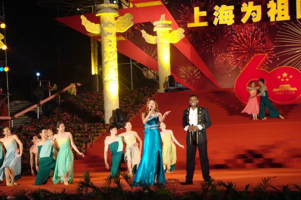 为庆祝新中国成立60周年,由上海文广新闻传媒集团主办的《上海为祖国喝彩》大型文艺晚会于9月29日在东方明珠录制。我校作为参演单位,选派校国际学生联谊会主席,来自巴哈马的留学生柯森与上海知名女演员倪睿思合唱了《弯弯的月亮》,该节目预计将于国庆节当日在艺术人文频道播出。