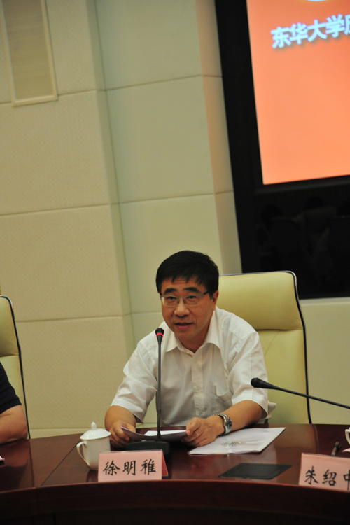 徐明稚指出,学校如同国家的命运一样,1951年建校,1960年被国家列为全国重点高校之一,文革期间发展停顿。但党的十一届三中全会以后,迎来了“改革开放”的春天,迈上了加速发展的快车道。他说,上个世纪八十年代,学校抓住经济恢复发展的机遇,努力提高人才培养水平,不断加强科技创新,一批成果有力支撑了纺织工业的快速发展,纺织类学科水平迅速恢复提高,1986年化学纤维和纺织工程2个学科成为国家重点学科,重新确立了学校纺织特色的优势地位;九十年代,国家实施“科教兴国”战略,学校抓住国家以高新技术改造传统产业以及上海浦东开发开放和建设国际经济、贸易和金融中心的机遇,加快拓宽学科专业领域,在学位建设方面取得明显成效,1997年成功进入“211工程”重点建设大学行列;新世纪以来,党和国家做出“建设人力资源强国”的重大战略决策,学校面临我国高等教育向大众化阶段发展的历史性机遇。学校确定了有特色、多科性、高水平的目标定位,明确了“一切以学生的全面发展与成才为中心”的办学理念,“观念兴校、学术兴校、管理兴校”的发展理念,“增强特色、拓宽基础、加强交叉、按需发展”的学科发展战略和“学科建设为龙头、队伍建设为抓手、人才和成果为落脚点”的工作方针。学校规模快速发展,结构不断优化、学科加速拓展、整体实力不断提高。博士点从单一的工科拓展到工、理、管三个学科门类;建设松江校区,解决了制约学校发展的空间瓶颈,为后续发展提供了坚实条件,以工为主,工、理、管、文等学科协调发展,有特色、多科性、高水平大学的建设上了一个新台阶。