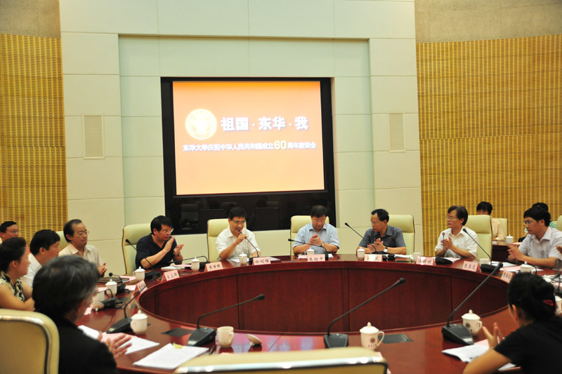 徐明稚校长在讲话中回顾了学校与共和国一起成长发展壮大的光辉历程。他说,学校1951年建校,从建校之初3个专业、32名教师、千余名学生、300亩校园的纺织单科性高校,发展成为涵盖工、理、管、文、经、法、哲学、历史、教育九大学科门类,12个专业学院,近3万在校学生,2000亩校园,77万多平方米校舍,15亿元固定资产,有特色、多科性、教育部直属的全国重点大学。东华大学随着新中国的诞生而诞生,随着新中国的发展而发展,与共和国共命运、与时代共发展,学校的发展是国家发展的一个缩影。