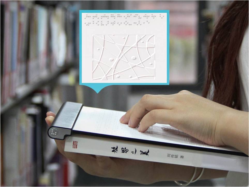 获奖作品“盲人用图片文字转换器”是在产品设计系吴翔教授、吴春茂老师的指导下,由覃羽、陶梦月、郑鑫等学生团队合作完成,作品主要利用当下的技术创新及光学、机械、电子和声学等综合技术,为盲人设计一款图文转化器,有助于盲人更便捷地辨识图片文字。评委认为,帮助盲人识别图片是个全新的设计理念,该设计作品体现了设计师对视觉障碍者的人文关怀。