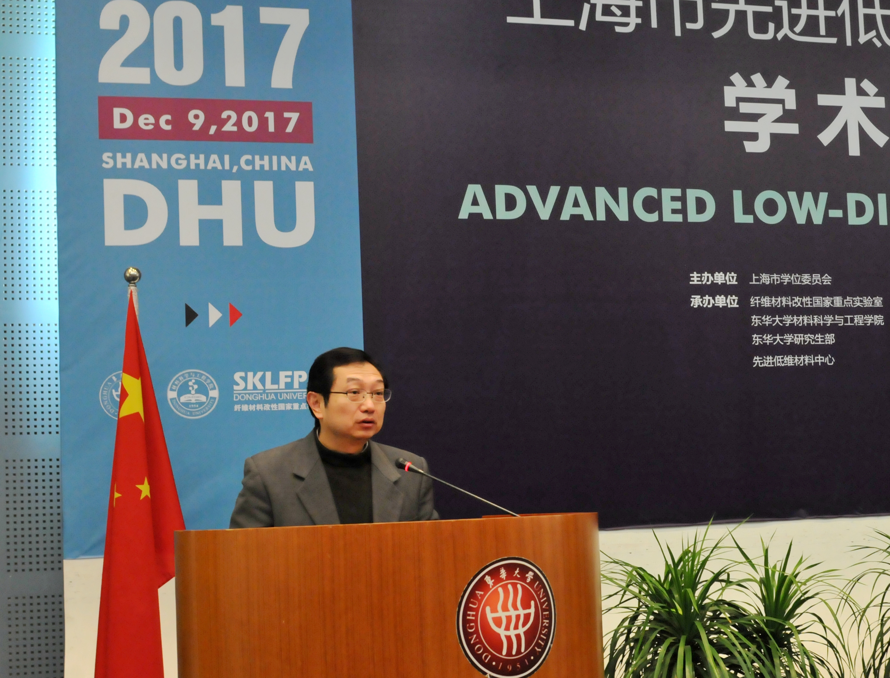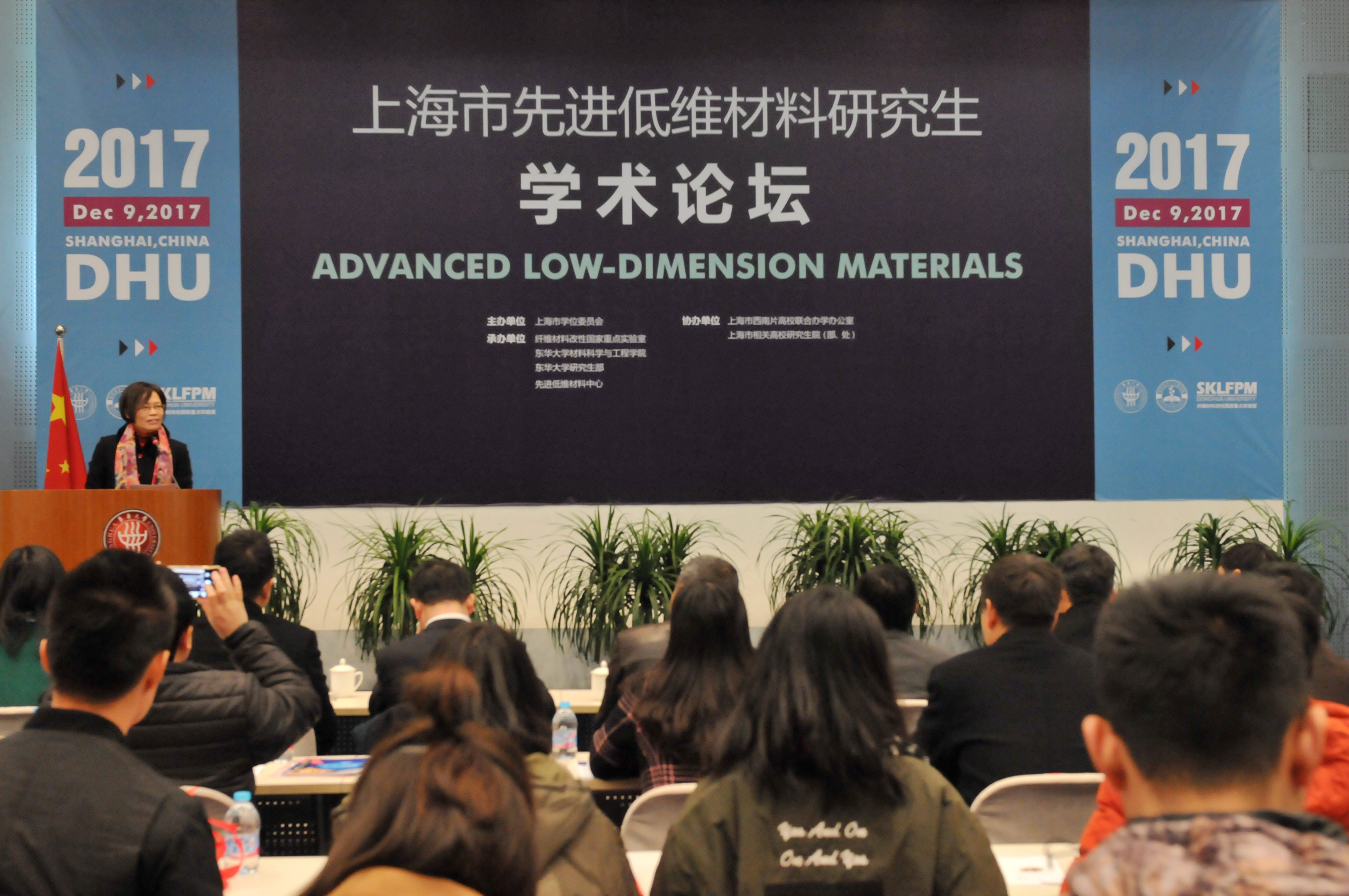 12月9日,由上海市学位委员会主办,纤维材料改性国家重点实验室、我校材料学院、研究生部、先进低维材料中心承办的2017上海市先进低维材料研究生学术论坛在松江校区举行。副校长邱高出席开幕式并致辞。纤维材料改性国家重点实验室主任、材料学院院长朱美芳教授主持会议,来自沪上高校的20余位专家学者及100余名研究生参会。