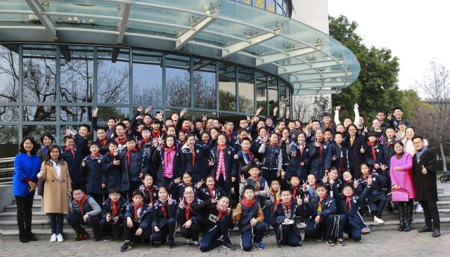 3月22日,东华大学附属实验学校六年级的75名同学,在副校长张云洁和多位老师的带领下,来到东华大学参加纤维材料改性国家重点实验室开放日活动。