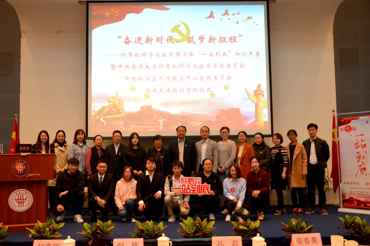 4月17日,中共东华大学计算机科学与技术学院委员会与中共松江区人才服务中心支部委员会结对共建签约仪式暨第七届“一站到底”知识竞赛在图文信息中心第二报告厅举行,松江区人才服务中心主任倪晖,副主任柴春燕、王俊,计算机学院党委书记孙莉,学生处副处长赵彦明等企事业单位代表参加仪式,活动由计算机学院党委副书记李华婷主持。