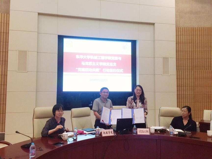 为深入贯彻落实党的十九大精神,认真贯彻落实全国高校思想政治工作会议精神,以党建共建为载体,提升基层党组织组织力,5月17日,机械学院党委与马克思主义学院党总支在松江校区签署协议,合作开展“党建联动共建”行动,马克思主义学院党总支书记、院长王治东,机械学院党委书记张千里以及两院师生代表参会。