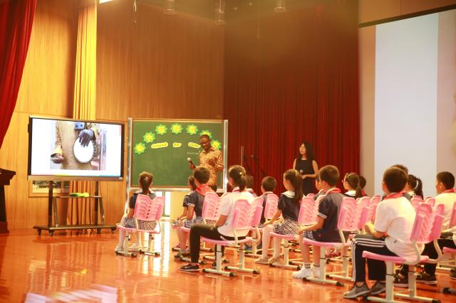 5月23日中午,“老外带你看世界”国际理解教育课程总结展示活动在东华附校经纬剧场举办,分会场锦绣厅同步直播。我校国际文化交流学院与东华附校相关负责人参加活动,我校20余位留学生代表和附校全体四六年级学生与会。