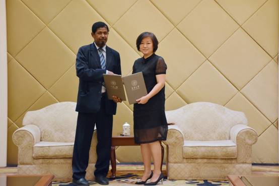 刘春红副校长对侯赛因校长一行表示热烈地欢迎。会上刘春红介绍了东华大学的学科特色以及近年在纺织服饰领域取得的发展,并诚挚邀请苏丹科学技术大学加入到“一带一路”纺织大学联盟的建设中。侯赛因校长欣然接受邀请并对东华大学取得的发展成果表示称赞。双方签署了校际合作备忘录,旨在促进两校在科研学术领域深入的合作与交流。
