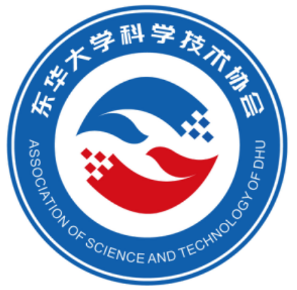 标志以“东华大学科学技术学会”英文手写字母“DHUAST”、互动的双手、翱翔的飞鸟、窗口、科技方块、彩带等元素经过艺术构思归纳变异组合组成。