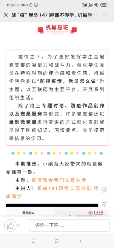 疫情就是命令,防控就是责任。机械工程学院全体师生党员坚决贯彻落实习近平总书记重要指示精神,凝心聚力、共克时艰,以实际行动彰显共产党人的初心使命和政治本色,凝聚起战“疫”磅礴力量!