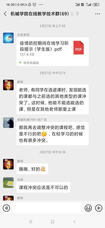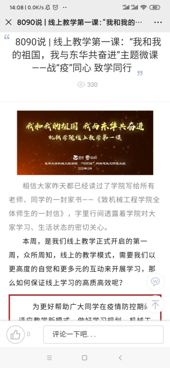 教师党员积极组建在线教学技术支持团队,全天候应对师生在线教学中遇到的各类突发问题,为在线教育保驾护航。2019级本科生班导师张慧乐老师录制“战‘疫’同心,致学同行”思政微课,针对超星学习平台的使用方法、学校协同平台的功能及使用、在线教学常见问题进行了详细讲解,坚决守护“学习防疫线”。