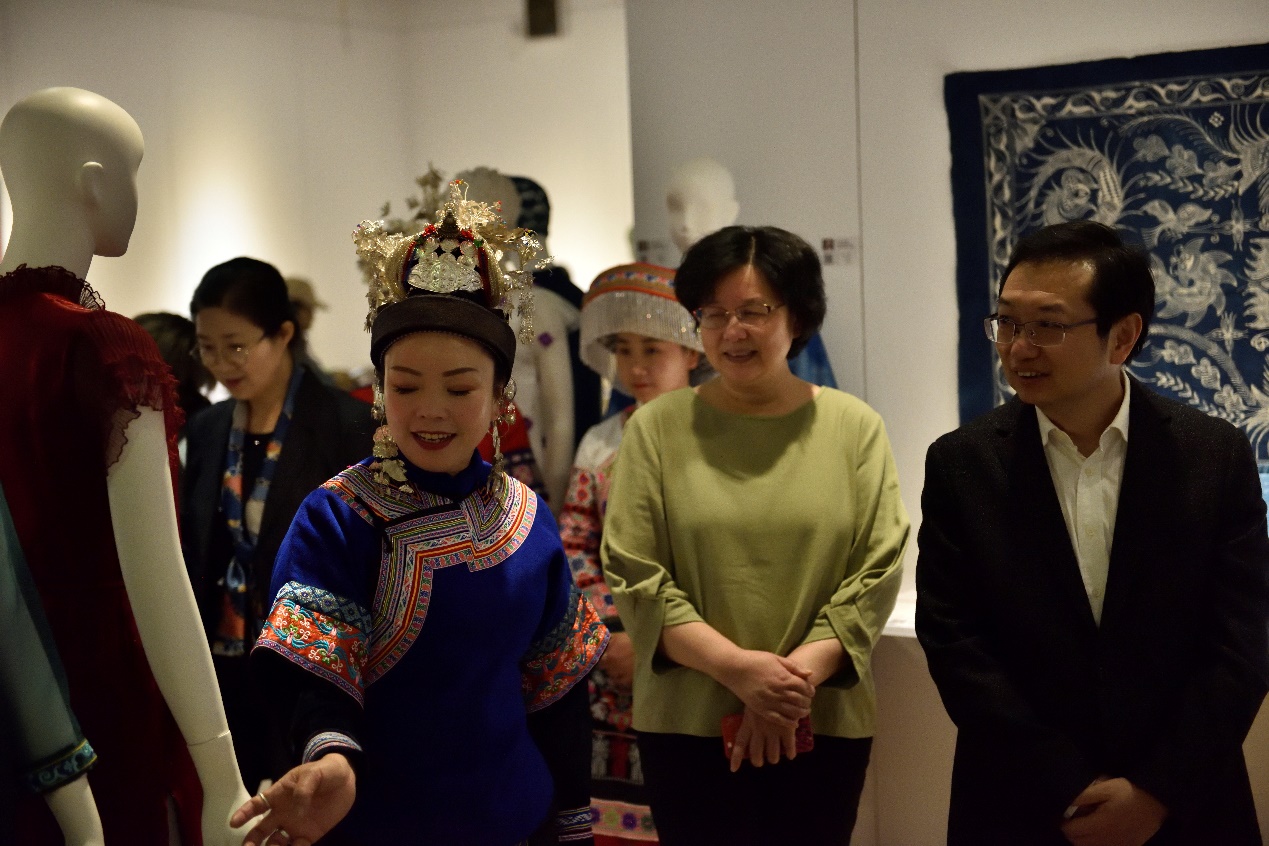 吴晶希望,传承人们作为“使者”让贵州的民族文化与东华大学时尚设计学科的特色更好地结合起来,学院也将不遗余力地提供支持,让更多的非遗成果落地生根、开花结果,走出中国、走向世界。吴晶宣布“时尚黔风”东华大学第八期传统刺绣创意设计研修成果静态展开幕。