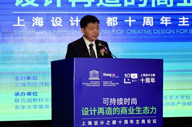 11月22日,由上海市经济和信息化委员会、长宁区人民政府、东华大学联合主办的上海“设计之都”十周年主线论坛之“设计点亮生活——时尚设计论坛”举行。上海市经济和信息化委员会主任吴金城,上海市长宁区委副书记、区长王岚,中国纺织工业联合会副会长孙淮滨,上海市文化创意产业推进领导小组办公室副主任刘波英,上海市长宁区委常委、副区长钟晓敏出席论坛。校长俞建勇出席并致辞,论坛由副校长陈革主持。国内外有关兄弟高校、相关企业、社会媒体以及校内师生代表200多人参加论坛。