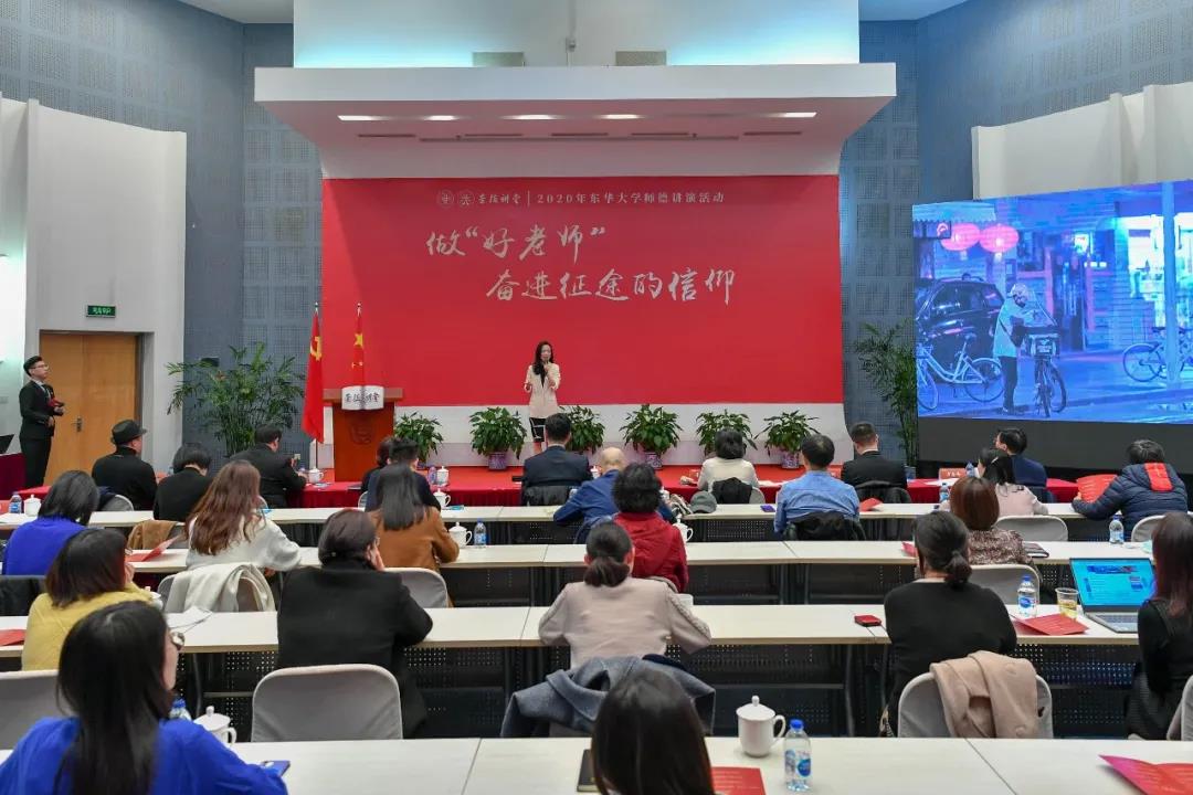 学校师德讲演活动已连续举办三年,通过深入一线、深入课堂、深入师生发掘师德典型,让东华师德故事永流传。广大教师在讲述身边真切的师德故事中受教育,涵养师德师风,推动全员全过程全方位的师德养成。本次讲演活动分初赛和决赛,共有来自二级单位党组织的21个讲演节目参加,12个节目入围决赛。