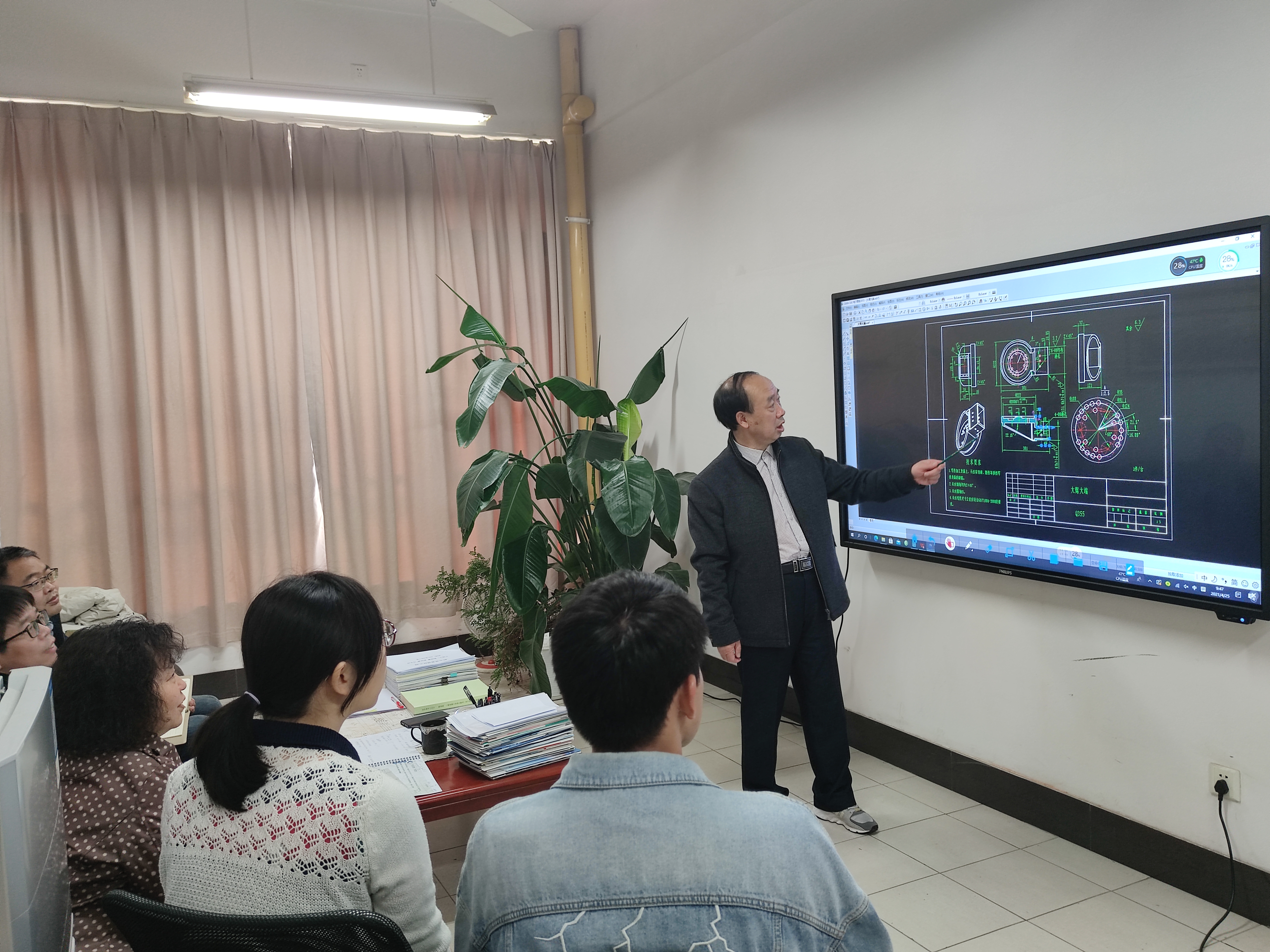 郁铭芳(右一)在扫描电镜实验室指导科研工作