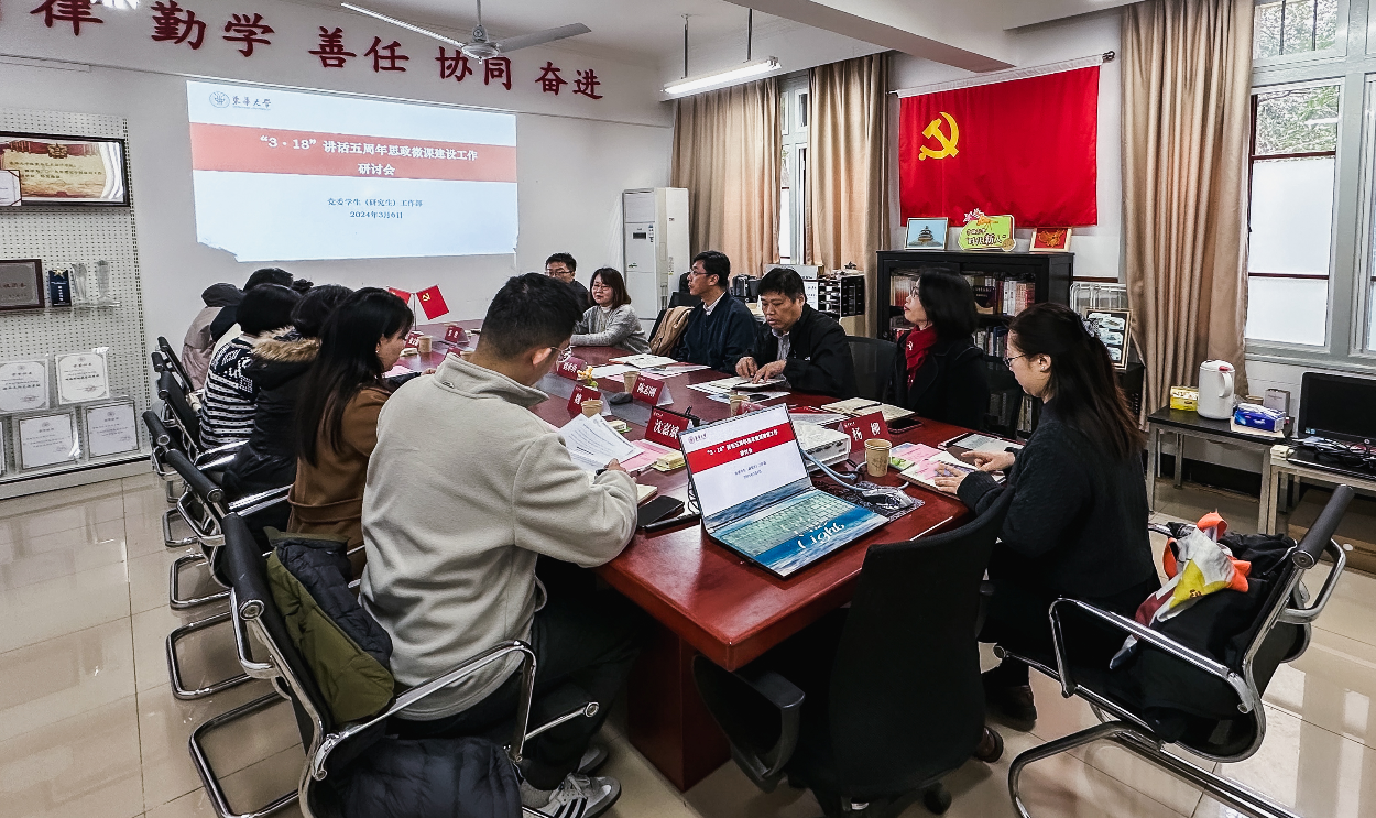 为深入贯彻落实习近平总书记在学校思想政治理论课教师座谈会上的重要讲话精神和关于思政课建设的重要指示批示精神,近日,学校在延安路校区召开习近平总书记“3·18”重要讲话五周年思政微课建设工作研讨会。党委书记刘承功出席并讲话,党委办公室、党委学生(研究生)工作部、服装与艺术设计学院相关负责人、sunshine思政微课工作室成员、辅导员代表参会。会议由党委学生(研究生)工作部部长廖丽金主持。