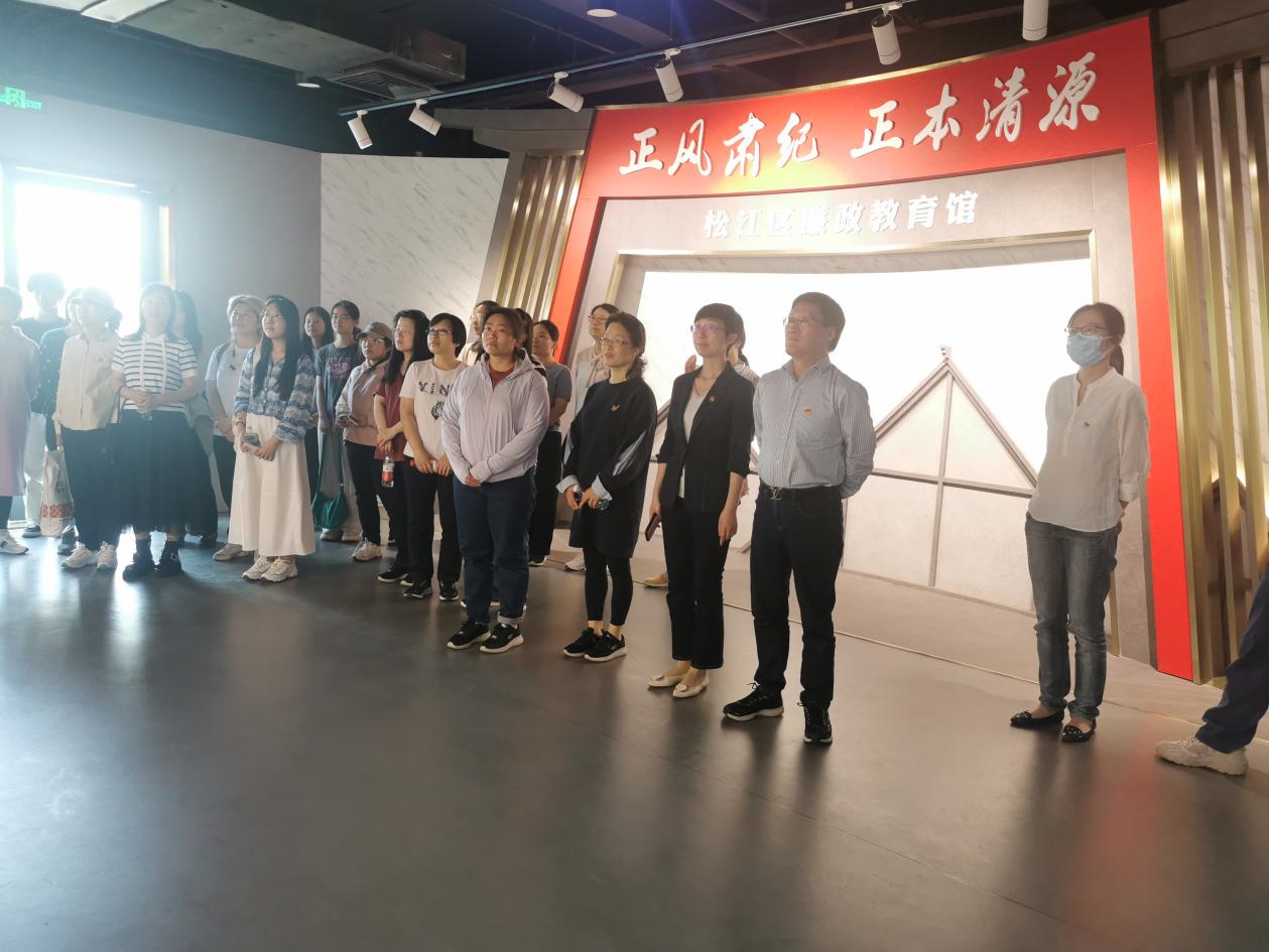 (图书馆教职工党员及爱书小蜜蜂服务队队员代表参观松江区廉政教育馆)