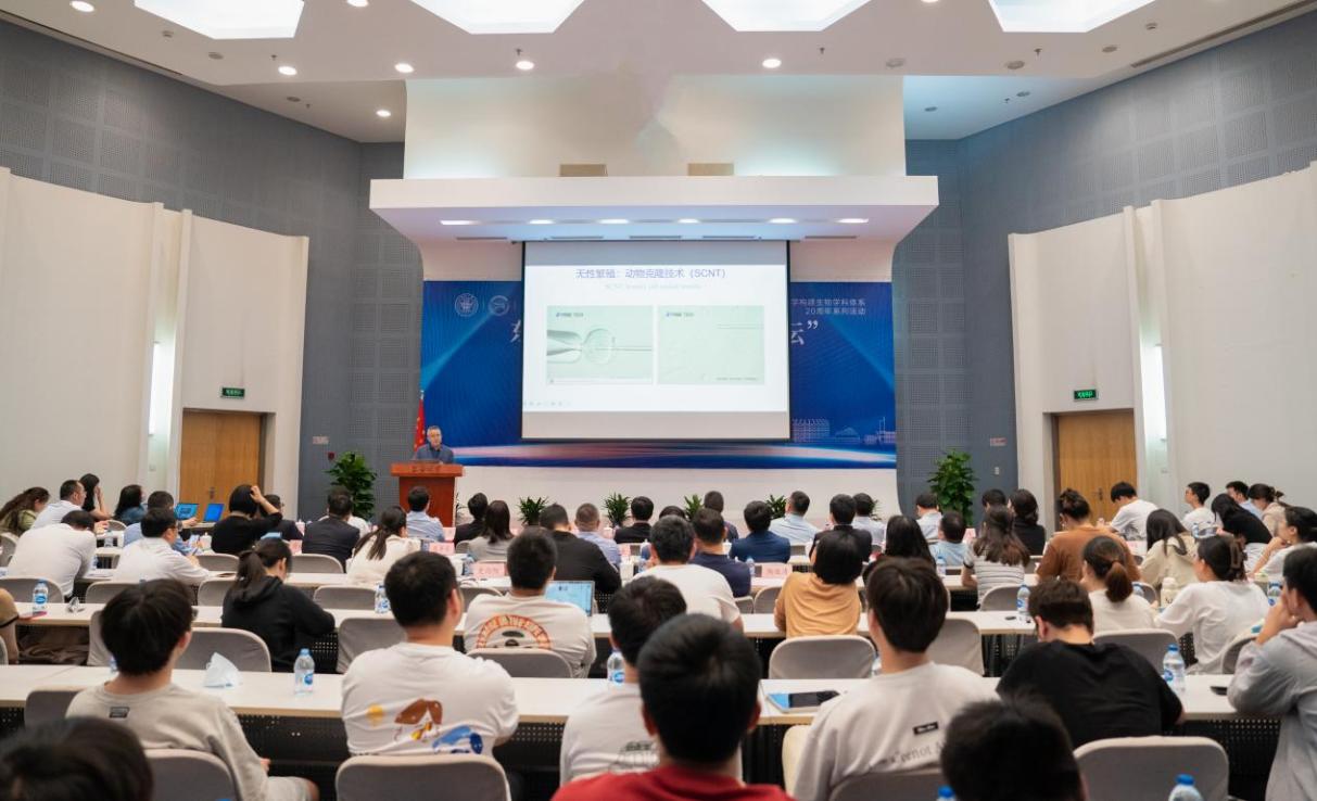 李劲松作题为“类精子干细胞介导半克隆技术的建立与应用”的报告,详细介绍类精子干细胞与半克隆技术的研究历程,深刻剖析其在多个应用领域发挥的作用。他认为,类精子干细胞可以培育传代,亦可当作“精子”实现受精,精子干细胞技术能够助力解决先天性生殖管道发育异常的遗传机制问题,有助于更好地理解和治疗疾病,探索蛋白质功能,也能应用于染色体结构与功能研究,引领尖端科学发展。他还在现场回答了师生的提问。