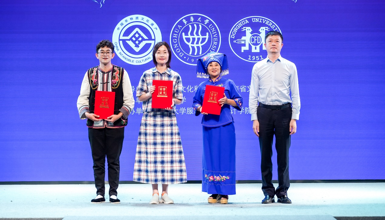 近日,东华大学第十一期“传统织染绣创意设计”非遗研修结业典礼暨“云裳申情”成果展示系列活动在延安路校区举行。文化和旅游部原副部长项兆伦为研修班做题为“非遗保护的认识与实践”的专题讲座。我校副校长陈革、上海非遗保护中心副主任朱静波出席结业活动并致辞,学生处、党委宣传部、国际合作处、服装与艺术设计学院相关负责人,以及相关区县非遗保护中心、企业嘉宾、兄弟院校师生代表和本校学子300余人参加活动。