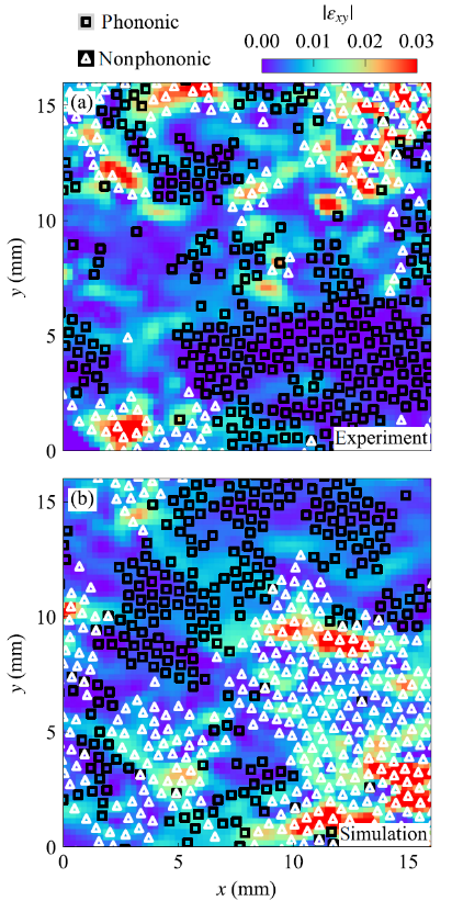 在致密胶体与模拟玻璃中,人们已经发现塑性粒子重排与低频振动模式存在一定关联,然而,在长程相互作用体系中,类似关联是否存在仍然是一个悬而未决的问题。本研究采用包含两种尘埃颗粒的双分散复杂等离子体形成无定形系统,在鞘层离子尾流效应作用下,不同种颗粒间相互作用具有非互易特性。实验中利用照明激光不均匀性驱动椭圆准二维颗粒悬浮层发生旋转,并由限制框提供的各向异性限制势施加剪切。研究发现局域剪切应变与非声子低频横模具有关联,且相关性强度与剪切率成反比。实验结果与朗之万动力学模拟结果一致,揭示这种关联同样适用于具有长程且非互易相互作用的特殊带电颗粒体系。