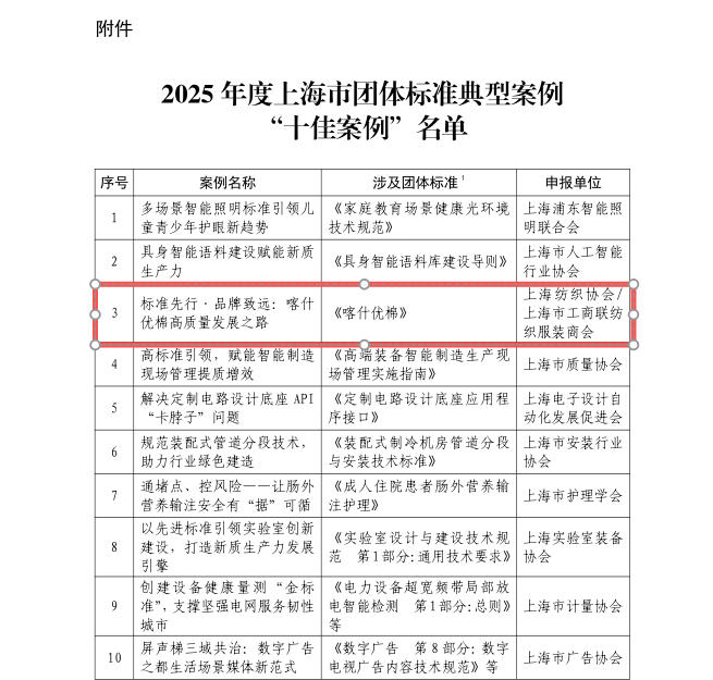 我校牵头编制的团体标准《喀什优棉》入选2025年度上海市团体标准典型案例 “十佳案例”