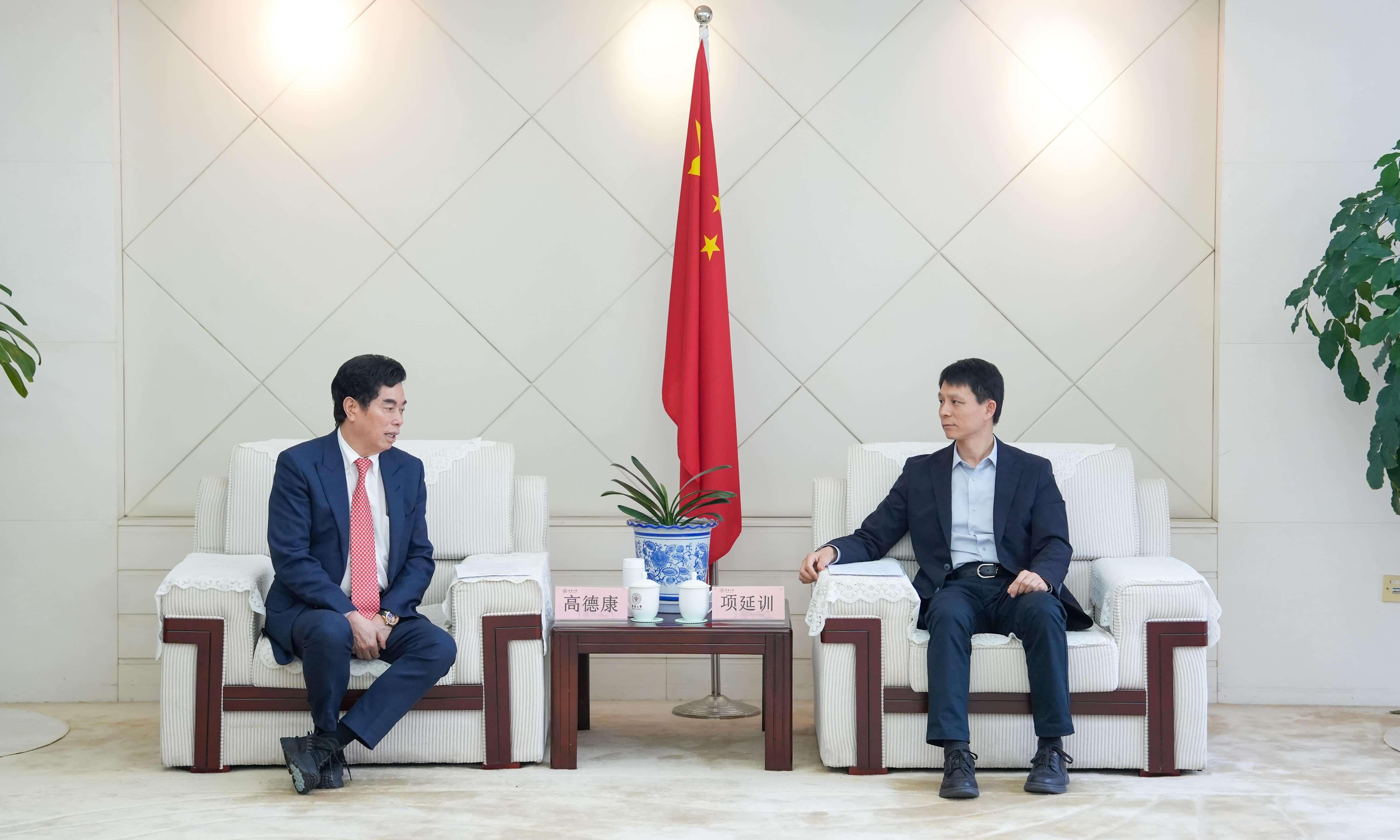 10月23日,全国工商联纺织服装业商会理事长、波司登创始人、集团董事局主席兼总裁高德康,波司登集团副总裁兼CHRO张磊一行来校调研交流,校长项延训、党委副书记李成龙在座谈会前会见高德康一行,就人才培养、科研合作等亲切交流。