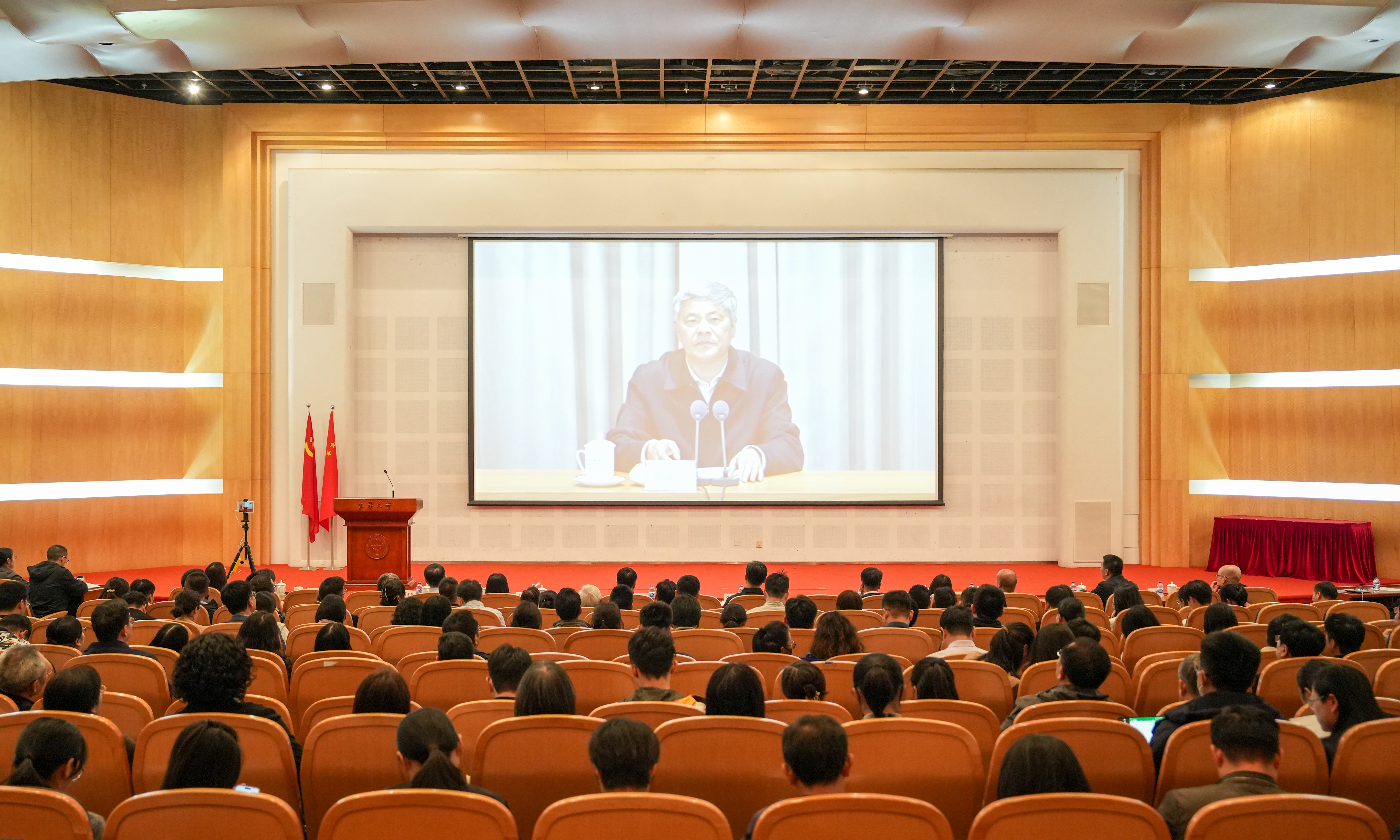10月28日,学校举行2025年党员基本培训第二次集中大课,学校领导班子成员及6100余名师生和离退休党员共同学习中央党校(国家行政学院)分管日常工作的副校长、副院长谢春涛主讲的“中国共产党与中华民族伟大复兴”辅导报告。上海市教卫工作党委组织干部处有关负责同志到会指导。党委书记刘承功主持并讲话。