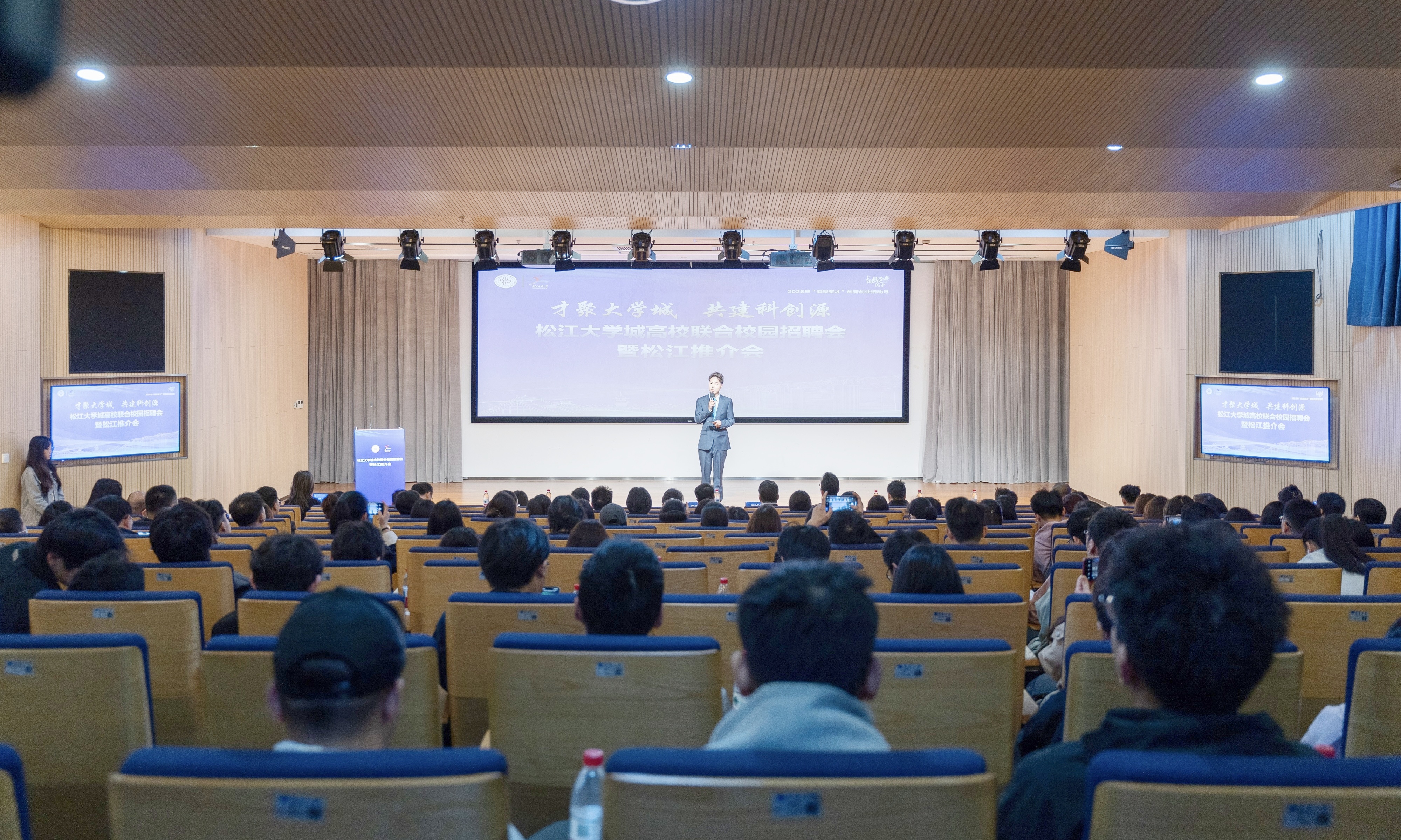 松江区人才局与团区委围绕最新出台的人才政策进行了系统解读。宣讲内容兼具宏观导向与实操指引,信息详实、重点突出,内容不仅涵盖了毕业生最为关注的住房保障、就业补贴等核心政策要点,还详细介绍了人才落户、子女教育等配套服务,通过具体案例和数据分析,让学子们能够更加直观地了解选择留在松江发展的多重优势和政策红利,同时还分享了松江区丰富的产学研合作资源和创业孵化平台,帮助毕业生深入理解并善用政策资源,为其在松江就业创业增强信心。
