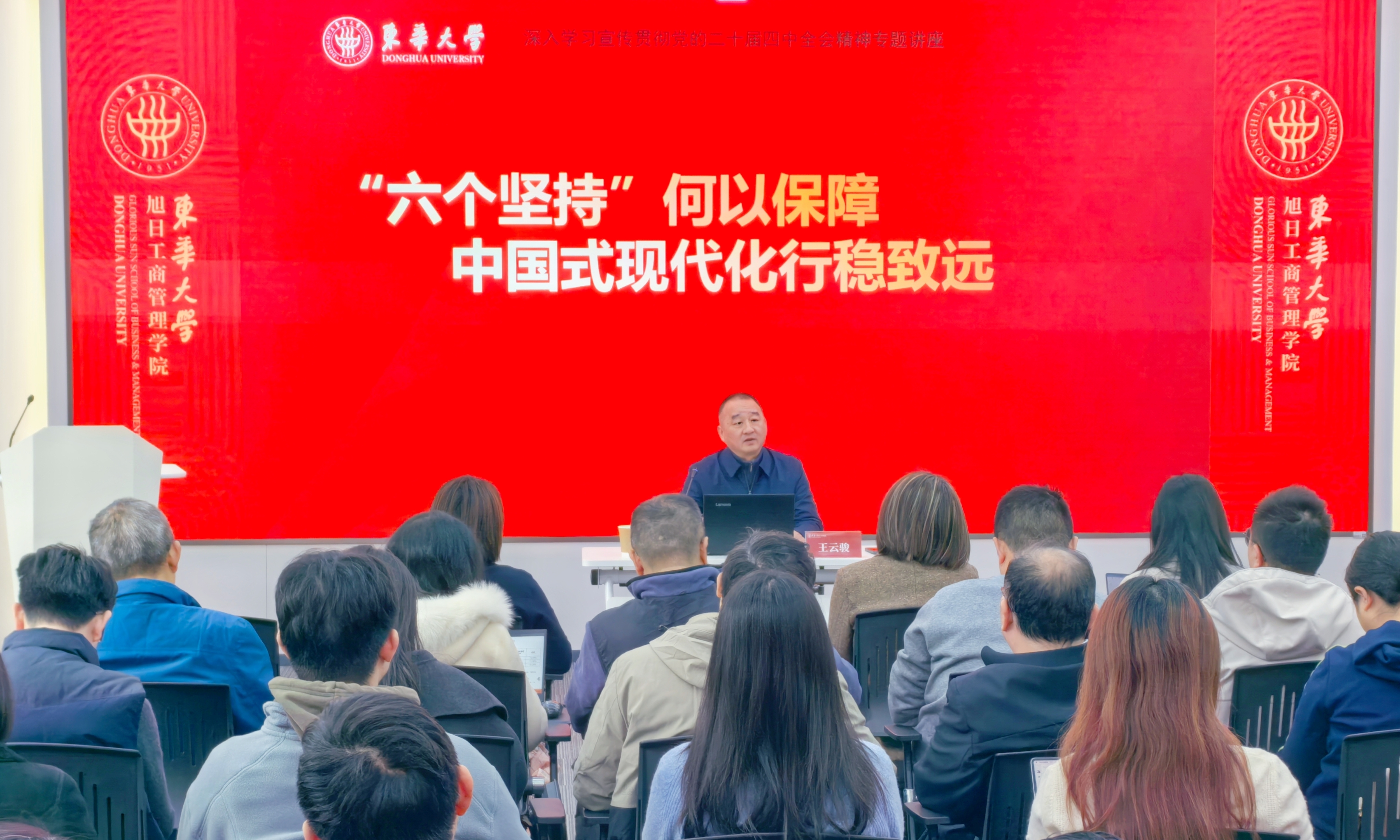 为深入学习贯彻党的二十届四中全会精神,12月16日,管理学院举办专题辅导报告会,邀请学习贯彻党的二十届四中全会精神宣讲团成员、学校原党委副书记、纪委书记王云骏教授作题为“‘六个坚持’何以保障中国式现代化行稳致远”专题报告,学院党员教师参加学习。
