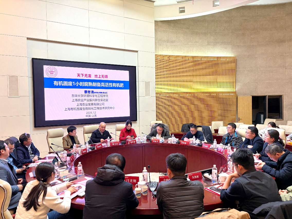 近日,东华大学环境科学与工程学院组织的“粪污1小时腐熟技术”中试观摩与技术交流会在学校和小昆山镇举办。副校长陆卫兵出席技术交流会,北京低碳农业畜禽废弃物资源化利用分会会长、原全国畜牧总站牧业绿色发展处研究员、农业农村部畜禽养殖废弃物资源化利用技术指导委员会办公室副主任杨军香,上海市农业农村委员会畜牧兽医管理处处长刘金才,上海市农业发展促进中心主任章伟建,上海市农委农业机械化管理处主任程志伟,中国农业大学资源与环境学院研究员袁京,松江区农业技术推广中心主任陈勇,松江区动物疫病预防控制中心主任李闽,松江区农业技术推广中心推广研究员唐纪华,上海农业发展有限公司副总经理朱凯敏,上海绿乐生物科技有限公司董事长闫龙翔,以及我校产学研合作处处长刘亚男、环境科学与工程学院院长宋新山、副院长李方参加,项目负责人蔡冬清研究员做汇报交流。