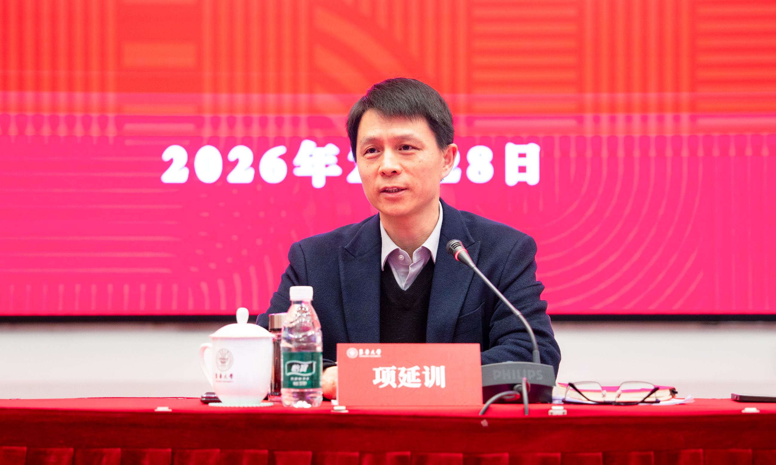 2月28日,学校召开2026年春季学期校领导班子务虚会。校长项延训,党委副书记李成龙,党委副书记、纪委书记耿绍宁,党委副书记王治东,副校长刘淑慧、陈革、阎林平、陆卫兵、张清华,党委常委朱英、任晓杰出席,各职能部处和业务部门主要负责人、学院党组织书记、院长(主任)、科研平台主要负责人参加会议。