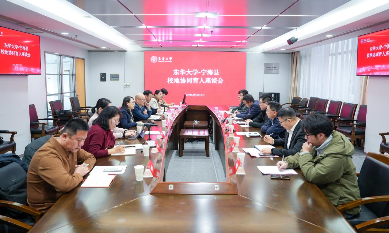 会后还召开了东华大学-宁海县校地协同育人座谈会,宁海县委宣传部常务副部长叶挺及其一行与学校相关职能部门负责人进行了深入交流。