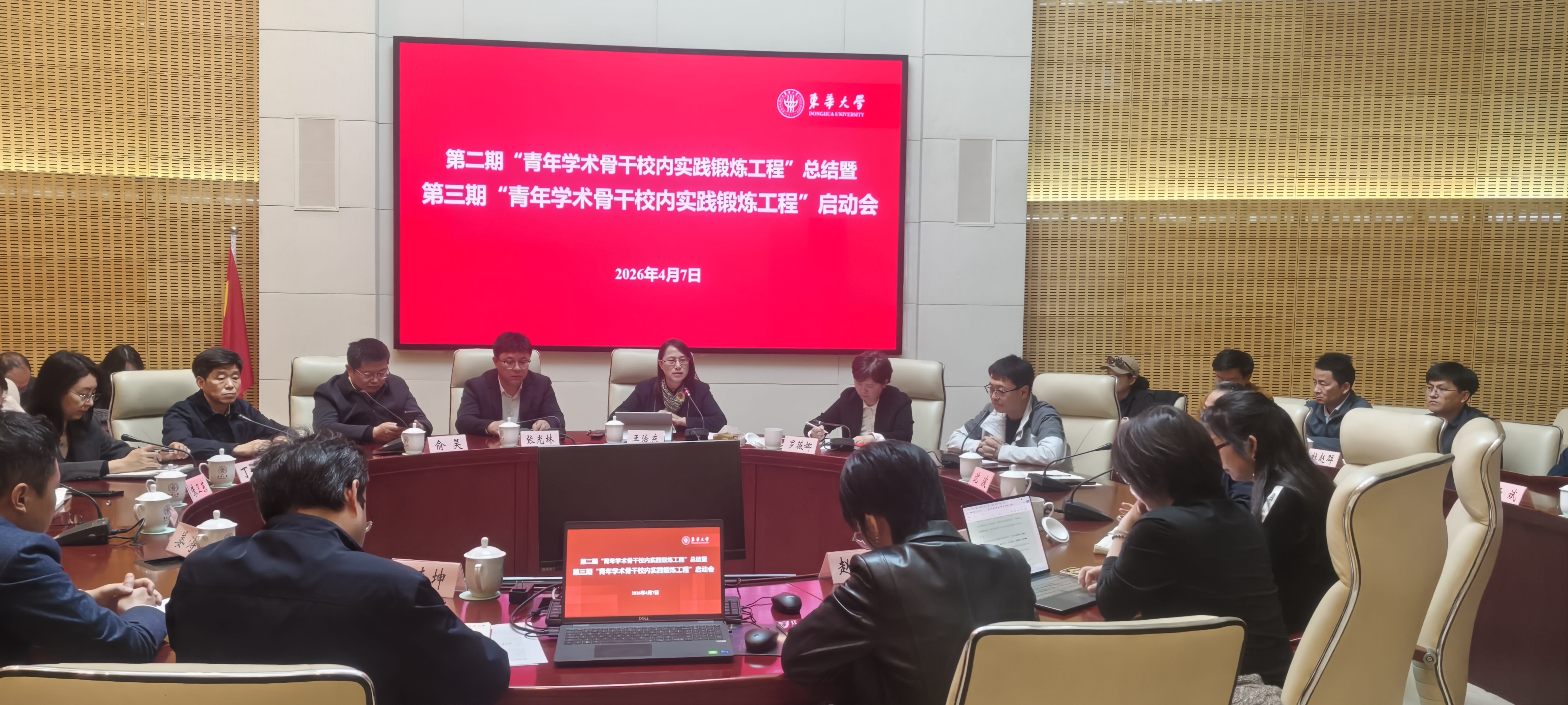 4月7日下午,东华大学第二期“青年学术骨干校内实践锻炼工程”总结暨第三期“青年学术骨干校内实践锻炼工程”启动会在松江校区召开。校党委副书记王治东出席会议并讲话,会议由党委组织部部长罗薇娜主持。相关挂职接收单位负责人、第二期和第三期挂职青年学术骨干参加会议。